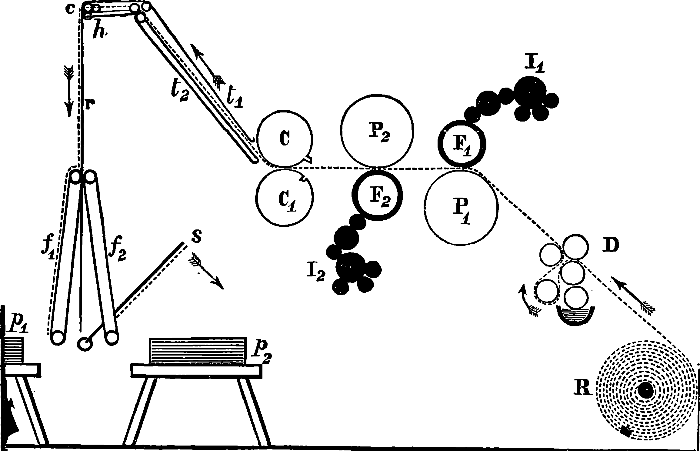 A typical example of the storing up of energy is furnished by a crossbow. The moment a man begins to bend the bow he is doing work, because he pulls the string in opposition to the bow’s resistance to a change in its form; and it is plain that the amount of energy thus expended is measurable. Suppose, now, the bow has been bent and the string caught in the notch, from which it is released by drawing the trigger when the discharge of the bow is desired. The bow may be retained for an indefinite period in the bent condition, and in this state it possesses, in the form of potential energy, all the work which has been expended in bending it, and which it will, in fact, give out, in some way or other, whenever the trigger is drawn. To fix our ideas, let us suppose that to draw the string over the notch required a pull of 50 lbs. over a space of 6 in.; that is equivalent to 50 × ½ = 25 units of work. Now let the bow be used to shoot an arrow weighing ¼ lb. vertically upwards. The height in feet to which the arrow will rise multiplied into its weight in pounds will be the work done upon it by the bow. Now, we say that experiment proves that in the case supposed the arrow would rise just 100 ft., so that the work done by the 807bow (¼ × 100 = 25) would be precisely that done upon it. For the sake of simplicity, we keep this illustration free from the mention of interfering causes, which have to be considered and allowed for when the matter is put to the real test of quantitative experiment. The instance of the crossbow brings into notice a highly instructive circumstance, which is this: the bow, which it may have taken the strength of a Hercules to bend, will shoot its bolt by the mere touch of a child on the trigger. In the same way, when a man fires a gun, he merely permits the potential energy contained in the charge to convert itself into actual, or kinetic, energy. The real source of the energy, in the case of the child discharging the crossbow, is the muscular power of the man who drew it; the real source of the energy in exploding gunpowder is the separation of carbon atoms from oxygen atoms, and that has been done by the sun’s rays, as truly as the string was pulled away from the bow by muscular power. If we turn our attention to nitro-glycerine or to nitro-cellulose, we can, by following the chemical actions giving rise to these substances, in like manner trace their energies to our great luminary. The unstable union by which oxygen and nitrogen atoms are locked up in the solid and liquid forms of nitro-cellulose and nitro-glycerine is also the work of the sun; for nitrogen acids, or rather nitrates, are produced naturally under certain electrical and other conditions of the atmosphere, which are due, directly or indirectly, to the sun’s action; and they cannot be formed artificially, except by imitating the natural conditions, as by passing electric sparks through air, &c.