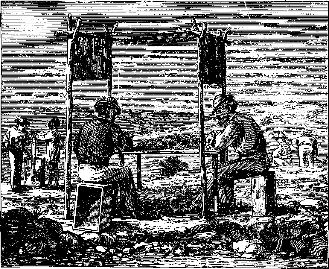 Anthracene was discovered in coal-tar by Laurent in 1832, and its properties were investigated by Anderson in 1862. It may be remarked that such investigations were not conducted with a view to any industrial uses of anthracene, but merely for the sake of chemistry as a science. Certainly no one could have supposed at that time that the slightest relation existed between anthracene and madder. Anthracene is a white solid hydro-carbon, which comes over only in the last stages of the distillation of coal-tar, accompanied by naphthaline, from which it is easily separated by means of spirits of wine, by which the naphthaline is readily 798dissolved, but the anthracene scarcely. Anderson, in 1861, discovered, among other results, that anthracene, C14H10, by treatment with nitric acid became changed into oxy-anthracene, C14H8O2; and this reaction we shall see is a step in the process of procuring alizarine from anthracene. Phenol, as already mentioned, can be made to yield benzol, by a process of deoxidization. With a view to similarly obtaining a hydro-carbon from alizarine, Graebe and Liebermann passed its vapours over heated zinc filings, and thus produced anthracene from alizarine. It now remained to find a means of reversing this process, that is, so to act on anthracene as to produce alizarine, and this was effected by treating anthracene with bromine, forming a substance which, on fusing with caustic potash, yielded alizarate of potash, from which pure alizarine resulted by treatment with hydrochloric acid. A much cheaper method was, however, necessary for manufacturing purposes, and it was found in a process by which oxy-anthracene, C14O8H2, is treated at a high temperature with strong sulphuric acid, and the product so formed heated with a strong solution of potash, yielding alizarate of potassium as before. Many other interesting substances appear to be formed in the reactions, but the nature of these bodies has as yet been imperfectly investigated. No doubt whatever can be entertained of the identity of natural with artificial alizarine; and the production of this substance, the first instance of a natural colouring matter made artificially, may be regarded as a great triumph of chemical science. It was not long ago supposed that the chemical bodies found in plants or animals, or produced by vital actions, could not possibly be formed by any artificial process from their elements. The laws which presided at their formation were, it was conceived, wholly different from those which governed the chemicals of the laboratory, for they were held to act exclusively under the influence of a mysterious agent, namely, “vital force.” It was supposed, for example, that from pure carbon, oxygen, and hydrogen, no chemist would ever be able to produce such a compound as acetic acid. Accordingly the domain of chemical science, previous to the end of the first quarter of the present century, was divided by an impassable barrier into the two regions of organic and inorganic chemistry. Now, however, the chemist is able to build up in his laboratory from their very elements a great number of the so-called organic bodies. And it is quite possible to do this in the case of alizarine; that is, a chemist having in his laboratory the elements, hydrogen, carbon, oxygen, &c., could actually build up the substance which gives its value to madder.