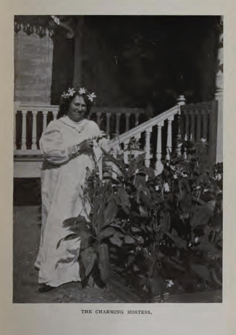 The hot outdoor swimming bath is a toy with which one really cannot stop playing. It is something so new and so amusing to dive into a bath 90 feet long and 102 deg. Fahrenheit as to heat; swim about like marigolds in broth, in a temperature that would cook an egg in a few minutes, and all the time see the exquisite weeping willows wave overhead, the tall grasses stand on the bank, the wild clematis tremble in the trees above the pool. After the hot dip, one steps over a partition into another bathful of cool spring water, only 68° in heat, to cool down; and then comes dressing in a little bath-box (shut off from the grounds, like all the bath, by a high board fence), followed by a two minutes’ walk back to the house. But again, when night comes on, and the moon silvers the weeping willows to the semblance of pale frost-foliage on an icy pane, and the dim wraith-like vapours of the pool float up in ghostly shapes and shadows about the darkness of the inner boughs, one is tempted to come down once more, gliding hurriedly through the chill night air to the pool, locking the door, and floating for an hour or more in the dim, warm, drowsy waters. Cold? No one ever gets cold from the thermal waters, even if the cool dip is left out. That is one of their chiefest charms.