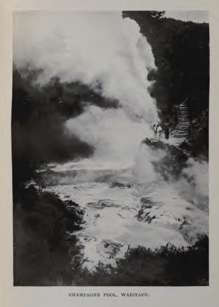 One, of the great charms of the geyser country about Rotorua is its absolute unlikeness to anything that can be found on the other side of the Line. To the much-travelled wanderer, nearly all famous show-places, after a time, display a distressing similarity. The two or three leading types of peasant to be found on the Continent of Europe, grow familiar by-and-by. Giuseppe of Italy is not very novel to the traveller who still remembers Ignacio of Spain; German Wilhelm recalls Dutch Jan; Belgian Françoise is sister to French Mathilde. As for the “sights”—well, one waterfall is very like another, and lakes and ruined castles pall, taken in bulk. Even if the traveller wanders further away, he does not find much in Egypt, India, or Japan, that has not been greatly spoiled for him beforehand, by the countless descriptions he has heard and read ever since childhood. It seems almost as though the illimitable flood of sight-seers, past and present, rushing through all the famous beauty-spots of the old world, had washed away something of their charm—as if the air about such places were drained dry of the ozone of fresh delight which every lovely and wonderful spot should give, leaving only an atmosphere of feeling that is stale and used-up in the last degree.