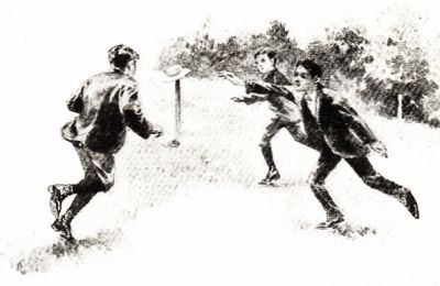 At this action Joe gave him a sharp look; and then came the words. "You needn't be so gay," and again the boys laughed merrily, Joe afterwards adding, "Well, another name for the game, and a much more pronounceable one, is 'Running for the Cap,' because a post is fixed in the ground, and on it a cap is placed and run for. The boys must be equally divided; one set is called catchers, the other runners, and these sets must stand fifty yards apart. The catchers' position is thirty yards from the post, and the runners' twenty. The call, one, two, three, is given, and on the second three is spoken one boy from each party runs to the post. The runner will naturally get there first, and he has to put the cap on his head, and then replace it. He must do this with the utmost rapidity, as, should the catcher overtake him on his way back to the position which he held before starting to run, the boy becomes the catcher's prisoner, and can no longer play."