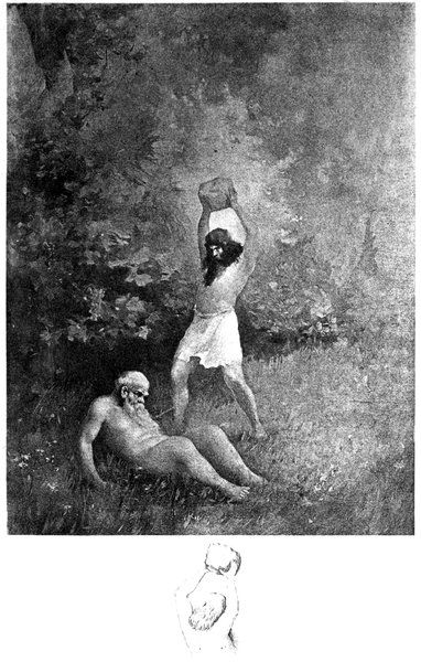 She said, It hath reached me, O auspicious King, that Sindbad the Seaman continued:—So when I escaped drowning and reached the island which afforded me fruit to eat and water to drink, I returned thanks to the Most High and glorified Him; after which I sat till nightfall, hearing no voice and seeing none inhabitant. Then I lay down, well-nigh dead for travail and trouble and terror, and slept without surcease till morning, when I arose and walked about under the trees, till I came to the channel of a draw-well fed by a spring of running water, by which well sat an old man of venerable aspect, girt about with a waist-cloth[60] made of the fibre of palm-fronds.[61] Quoth I to myself, “Haply this Shaykh is of those who were wrecked in the ship and hath made his way to this island.” So I drew near to him and saluted him, and he returned my salam by signs, but spoke not; and I said to him, “O nuncle 51mine, what causeth thee to sit here?” He shook his head and moaned and signed to me with his hand as who should say, “Take me on thy shoulders and carry me to the other side of the well-channel.” And quoth I in my mind, “I will deal kindly with him and do what he desireth; it may be I shall win me a reward in Heaven for he may be a paralytic.” So I took him on my back and carrying him to the place whereat he pointed, said to him, “Dismount at thy leisure.” But he would not get off my back and wound his legs about my neck. I looked at them and seeing that they were like a buffalo’s hide for blackness and roughness,[62] was affrighted and would have cast him off; but he clung to me and gripped my neck with his legs, till I was well-nigh choked, the world grew black in my sight and I fell senseless to the ground like one dead. But he still kept his seat and raising his legs drummed with his heels and beat harder than palm-rods my back and shoulders, till he forced me to rise for excess of pain. Then he signed to me with his hand to carry him hither and thither among the trees which bore the best fruits; and if ever I refused to do his bidding or loitered or took my leisure he beat me with his feet more grievously than if I had been beaten with whips. He ceased not to signal with his hand wherever he was minded to go; so I carried him about the island, like a captive slave, and he bepissed and conskited my shoulders and back, dismounting not night nor day; and whenas he wished to sleep he wound his legs about my neck and leaned back and slept awhile, then arose and beat me; whereupon I sprang up in haste, unable to gainsay him because of the pain he inflicted on me. And indeed I blamed myself and sore repented me of having taken compassion on him 52and continued in this condition, suffering fatigue not to be described, till I said to myself, “I wrought him a weal and he requited me with my ill; by Allah, never more will I do any man a service so long as I live!” And again and again I besought the Most High that I might die, for stress of weariness and misery; and thus I abode a long while till, one day, I came with him to a place wherein was abundance of gourds, many of them dry. So I took a great dry gourd and, cutting open the head, scooped out the inside and cleaned it; after which I gathered grapes from a vine which grew hard by and squeezed them into the gourd, till it was full of the juice. Then I stopped up the mouth and set it in the sun, where I left it for some days, until it became strong wine; and every day I used to drink of it, to comfort and sustain me under my fatigues with that froward and obstinate fiend; and as often as I drank myself drunk, I forgot my troubles and took new heart. One day he saw me drinking and signed to me with his hand, as who should say, “What is that?” Quoth I, “It is an excellent cordial, which cheereth the heart and reviveth the spirits.” Then, being heated with wine, I ran and danced with him among the trees, clapping my hands and singing and making merry; and I staggered under him by design. When he saw this, he signed to me to give him the gourd that he might drink, and I feared him and gave it him. So he took it and, draining it to the dregs, cast it on the ground, whereupon he grew frolicsome and began to clap hands and jig to and fro on my shoulders and he made water upon me so copiously that all my dress was drenched. But presently the fumes of the wine rising to his head, he became helplessly drunk and his side-muscles and limbs relaxed and he swayed to and fro on my back. When I saw that he had lost his senses for drunkenness, I put my hand to his legs and, loosing them from my neck, stooped down well-nigh to the ground and threw him at full length——And Shahrazad perceived the dawn of day and ceased to say her permitted say.
