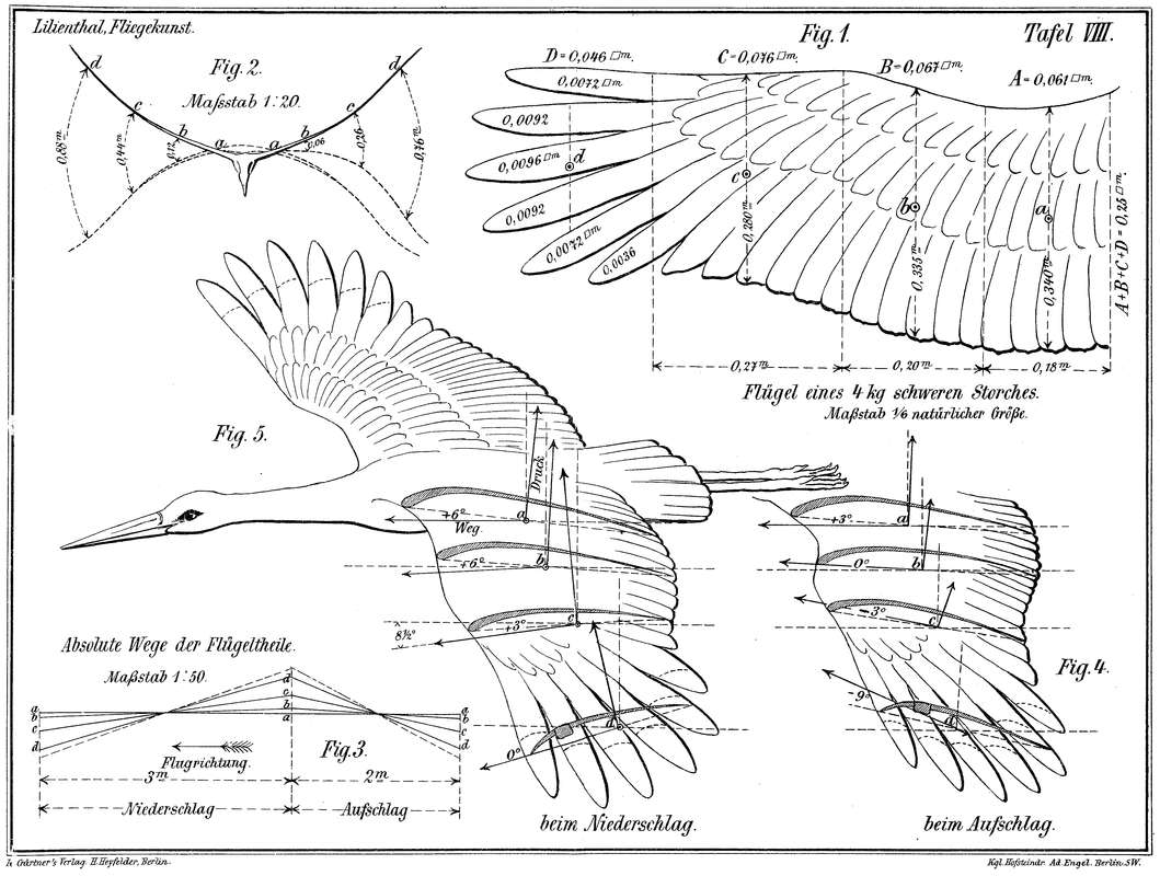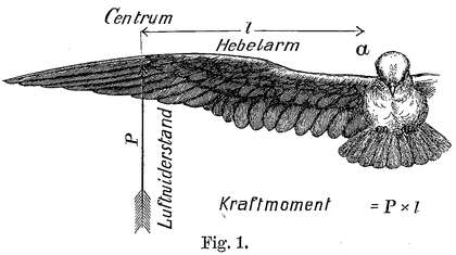 Alles dieses fanden wir am natürlichen Vogelfluge, alle diese Eigenschaften der Form wie der Bewegungsart können wir aber niemals hervorrufen, ohne uns direkt an den Vogelflug anzulehnen.