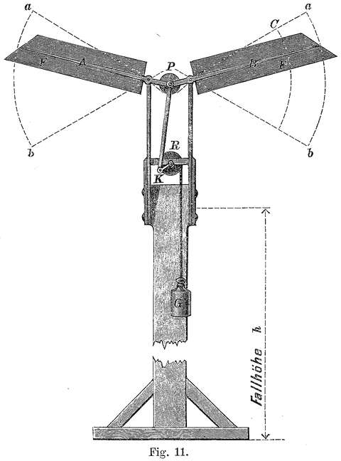 Ich konnte sehr handgreifliche Versuche hierüber anführen, die außer Zweifel lassen, daß die Schlagbewegungen einen Luftwiderstand geben, der mit anderem Maße gemessen werden muß, als wenn eine Fläche sich mit gleichmäßiger Geschwindigkeit im Beharrungszustande durch die Luft bewegt.