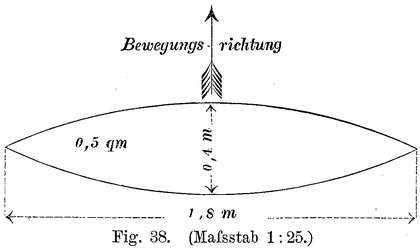 19. Die beste Wölbungsform für größere Flächen wäre durch Versuche zu ermitteln und derjenigen Form der Vorzug zu geben, deren Widerstände für kleinere Neigungswinkel sich am meisten nach der Bewegungsrichtung hinneigen.