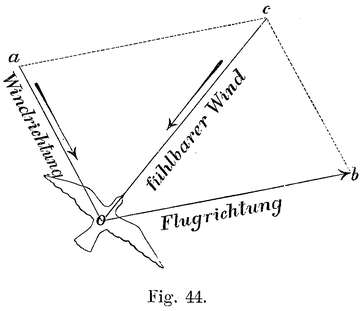 Als Eigentümlichkeit beim Bewegen in der Luft haben wir daher weniger das schnelle Fliegen anzusehen, als vielmehr die Fähigkeit, ein Herabfallen aus der Luft zu verhindern, indem das erstere sich fast von selbst ergiebt, sobald die Bedingungen für das letztere in richtiger Weise erfüllt sind.
