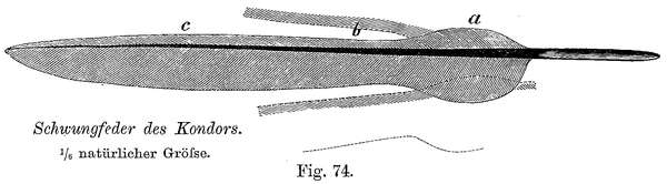 Vielleicht hat das Federkleid des Vogels, welches ihn umfangreicher erscheinen läßt, als wie er ist, besonders wenn dasselbe wie bei dem getöteten Vogel nicht straff anliegt, dazu beigetragen, ihm den Ruf der Leichtigkeit zu verschaffen. Von dem gerupften Vogel kann man entschieden nicht behaupten, daß er verhältnismäßig leichter sei als andere Tiere; auch unsere Hausfrauen stehen wohl nicht unter dem Eindruck, daß ein Kilogramm Vogelfleisch, und seien auch die hohlen Knochen dabei mitgewogen, umfangreicher aussieht als das gleiche Gewicht von Fleischnahrung aus dem Reiche der Säugetiere.