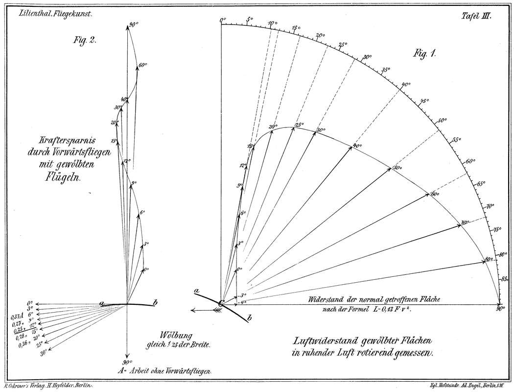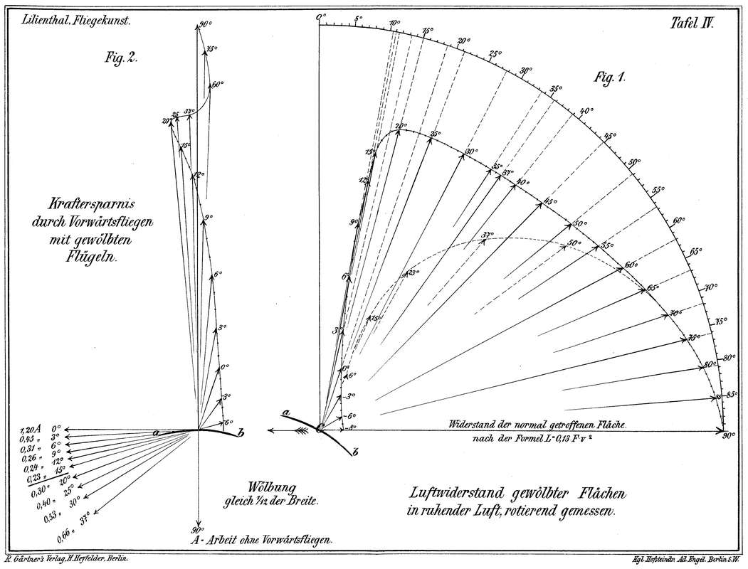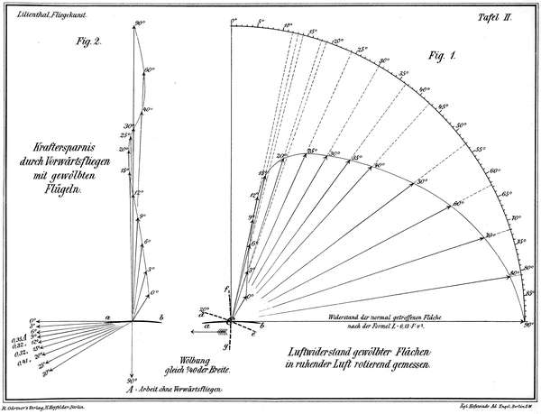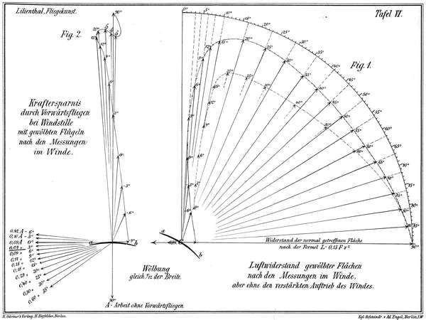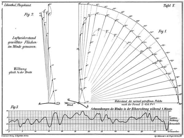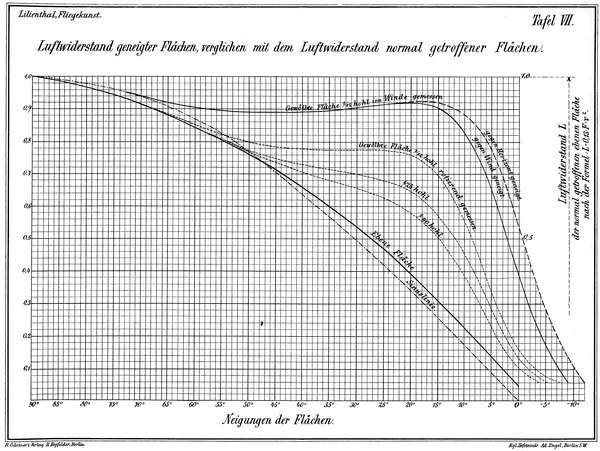 Um nun einen Beitrag zu liefern, die Eigentümlichkeiten der Luftwiderstandserscheinungen näher kennen zu lernen, und dadurch zur weiteren Forschung in der Ergründung der für die Flugtechnik wichtigsten Fundamentalsätze anzuregen, veröffentliche ich hiermit eine Reihe von Versuchen und an diese geknüpfter Betrachtungen, welche von mir gemeinschaftlich mit meinem Bruder Gustav Lilienthal angestellt wurden.