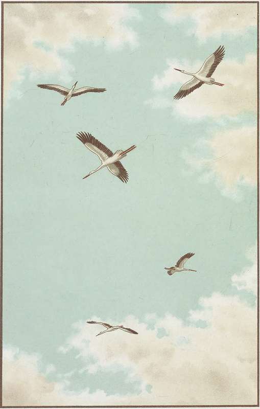 Kreisende Storchfamilie.