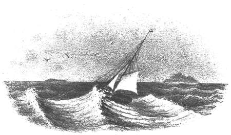 ”Stick bly i min skälbössa”, sade gubben med mycket lugn till den andre, och höll tillika skutan opp mot vinden, så mycket han kunde, för att underlätta gossens arbete i masttoppen.