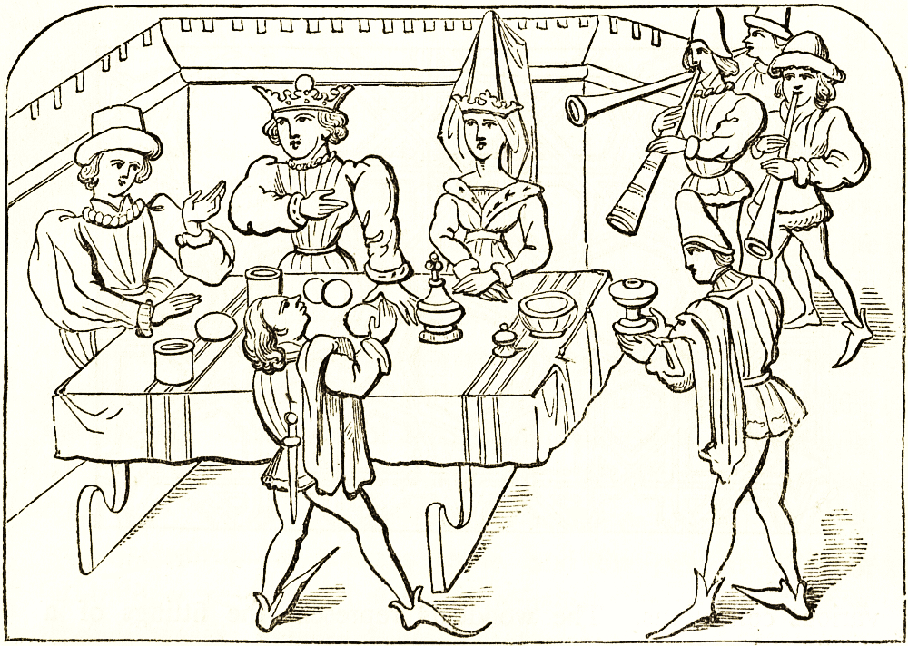 Robert Frevyll bequeaths, 1521, to his "son John a stone cobard in the hall." A manuscript inventory of Henry the eighth names, "Item, one large cuppbord carpet of grene cloth of gold with workes lyned with bockeram, conteyning in length three yards, iii. q'ters, and three bredthes." In the herald's account of the feast at Westminster, on the occasion of the marriage of prince Arthur, we find "There was also a stage of dyvers greas and hannes (degrees and enhancings of height) for the cuppbord that the plate shulde stande inn, the which plate for the moost part was clene (pure) goold, and the residue all gilte and non silver, and was in length from the closet doore to the chimney." And when in the next reign Henry entertained Francis at Calais, a cupboard of seven stages was provided and furnished with gold and silver gilt plate.