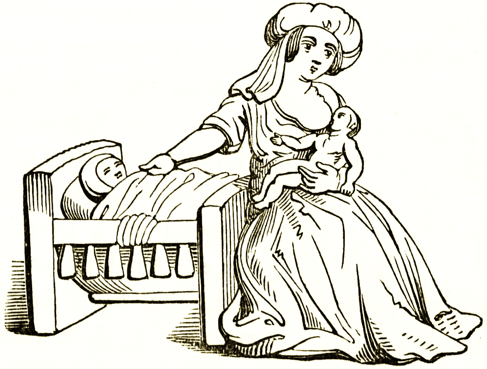 Cradles have been made in many shapes. The most approved in antiquity was that of a boat, σκάφος, or a shield; in either case they could be rocked. In the fourteenth century the men of Ghent destroyed the house of the earl of Flanders, according to Froissart, and all his furniture including the cradle in which he was nursed, which was of silver. The cradle of Henry the fifth is still preserved. It is in the form of a chest, much like the cradle in the Kensington museum, no. 1769; and swings on posts, one at each end, standing on cross-bars to keep them steady: but there is no higher portion, as in the example in the museum, to support a tester. A hundred years later the shape seems to have become heavier.