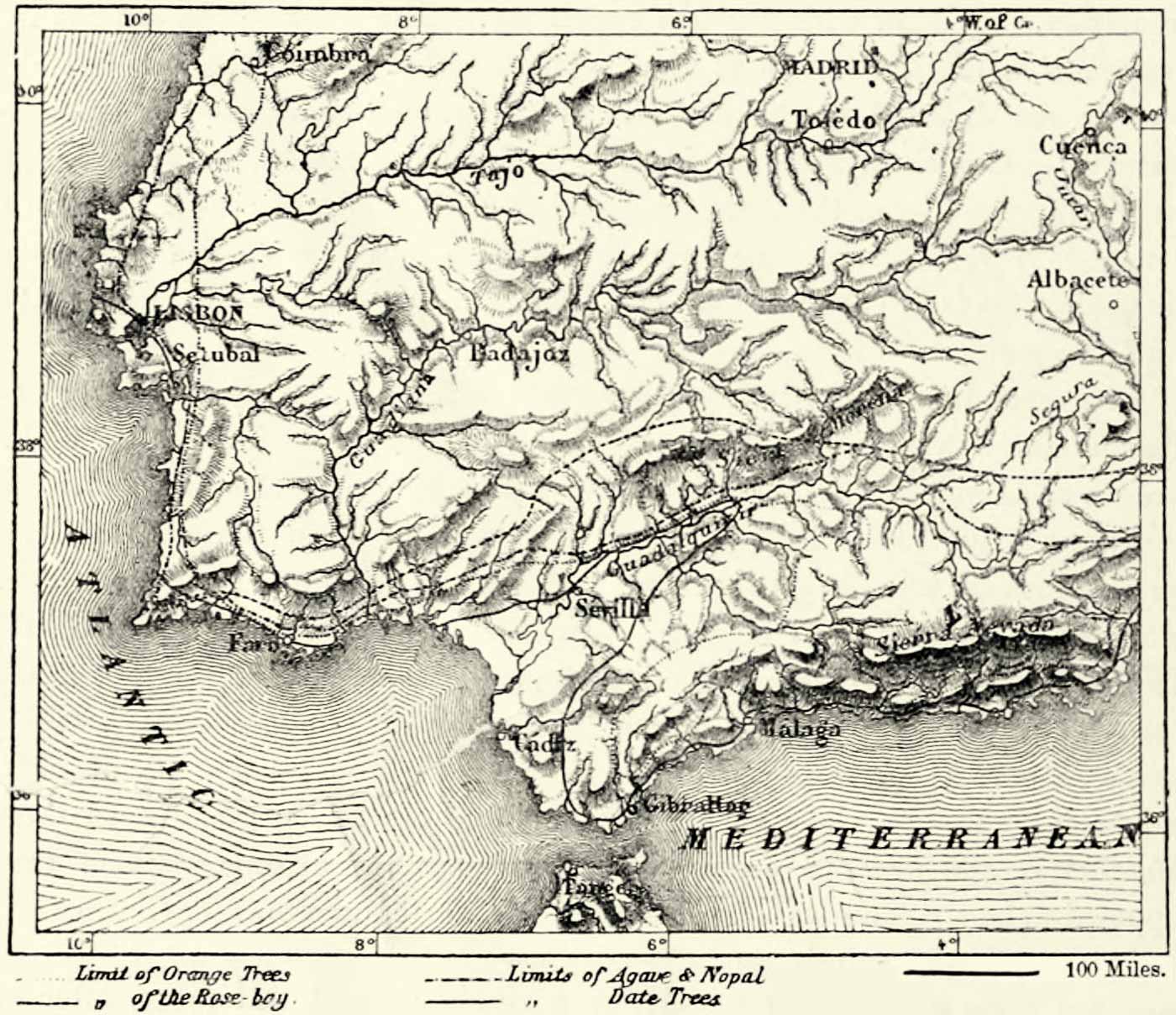 The climate of Europe is thus characterized by uniformity as a whole, and by a compensatory action in its contrasts. Regularity and freedom from excess, such as are not known in other continents, mark its ocean currents, its winds, its temperature and rains, and the course of its rivers. These great advantages have benefited its inhabitants in the past, and will not cease to do so in the future. Though small in extent, Europe possesses by far the largest area of acclimation. Man may migrate from Russia to Spain, or from Ireland to Greece, without exposing himself to any great risk of life. The inhabitants of the Caucasus and the Ural Mountains were thus able to cross the plains and mountains of Europe, and to establish themselves on the shores of the Atlantic. Soil and climate are equally propitious to man, and enable him to preserve his physical and intellectual powers wherever he goes. A migratory people might found new homesteads in any part of Europe. Their companions of travel—the dog, the horse, and the ox—would not desert them on the road, and the seed-corn which they carry with them would yield a harvest wherever confided to the earth.