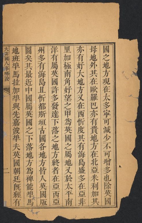 | The policy of the English government has often in China been most falsely represented, and it has been stated to be ambitious, and desirous of increase of territory. No assertion can be more distant from truth. The dominions of England are already so large, that the policy of the government is rather to diminish than to enlarge them. Besides the mother country, it has several valuable possessions in Europe; it has large territories in North America; and numerous islands in the West Indies. The Cape of Good Hope, in Africa, belongs to it; it has several prosperous settlements in Australia; numerous islands in Asia are subject to its rule; and the ancient territory of Hindostan with all the regions pertaining thereto, is now included in the British Empire. The small settlements of Penang, Martaban, Malacca, and Singapore, are those most contiguous to China. The government of so great an Empire has no thirst for conquest. Its great object and aim is to preserve its subjects in a condition of happiness and tranquillity. But while most desirous of doing so, it is very jealous of insult, and ever ready to avenge oppression and injustice. | 英國國朝之志意,屢被人在東土妄稱及,即有假言,以英國總是多貪廣開新地,但謊言莫 大於此。葢英國之地方,現在太多,𡨴可減少,不可增多也。除英國母地外,其在歐羅巴亦有貴地 方,在北亞米利加其亦有好大地方。又在西忻度其有海島盛多,在亞非里加極南角好望之甲爲英 國之屬地。又於太平南洋有屬英國許多發達下落之地方,終者在亞西亞州多有海島,且忻都斯垣 古國各地方,皆入英國版圖矣。其最近中國屬英國之下落地方爲裨能埠、馬地班埠、馬拉加埠、 與先嘉波埠。夫英國朝廷既經有了這多大地方,何得復渴望開新地乎。其所尚者,特爲養護英民, 享平安納福樂而已。但懷此意時,仍最忌恨被人之欺負,且必想報壓治背義之仇也。 |