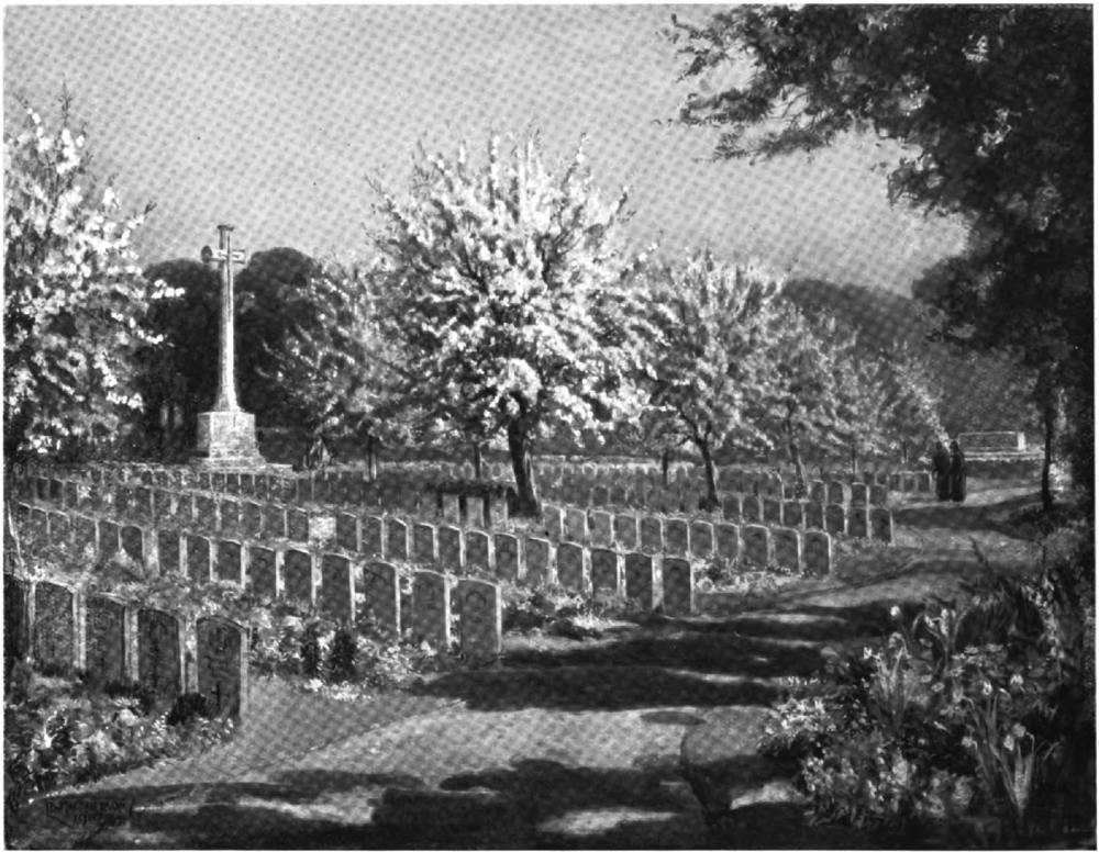 IN view of the enormous number (over half a million) of our dead in France alone, the removal of bodies to England would be impossible, even were there a general desire for it. But the overwhelming majority of relatives are content that their kin should lie—officers and men together—in the countries that they have redeemed. The Allied nations, too, have freely given their land to our dead for ever, and that offer has been accepted by the Governments. To allow exhumation and removal in the few cases where it has been suggested would, it seemed to the Commission, be undesirable, if only on the principle of equality, and, judging from what many gallant fighters have said and written before they in their turn fell, a violation, in all but a few special cases, of the desire of the dead themselves.{16}