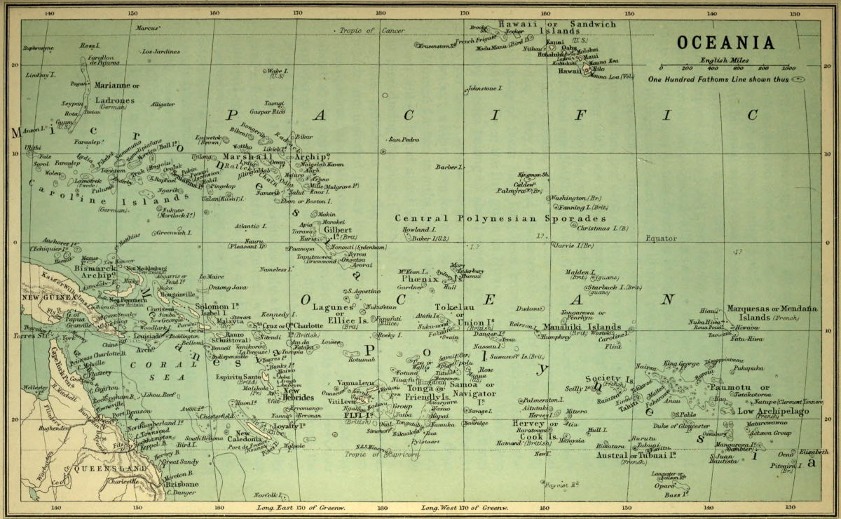 Introductory remarks.—The tranquil working of the winds and currents contrasted with the revolutionary influence of the bird.—The Hawaiian, Fijian, and Tahitian groups.—Their surface-areas and elevations.—Their climates.—The mountain climate of Hawaii.—The rainfall of the three groups.—Summary