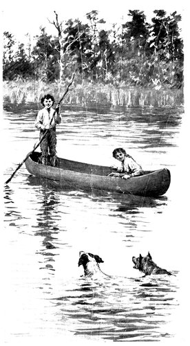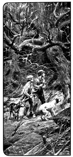 Jim watched the smoke for a few moments, and then walked around the tree to survey the premises. The result of his survey was the discovery of a hollow in the third tree of their castle, and when he informed Balser and Tom of the important fact, it was agreed that the room which Jim had found should be prepared for Tige 253and Prince. The dogs were not fastidious, and a sleeping-place was soon made for them entirely to their satisfaction.
