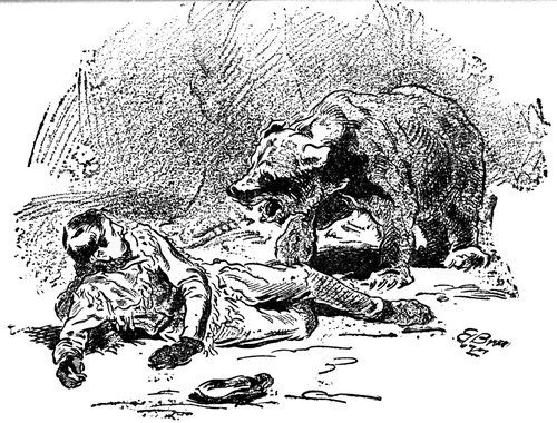 | “When the bear got within a few feet of Balser ... the boy grew desperate with fear, and struck at the beast with the only weapon he had—his string of fish” | 25 |