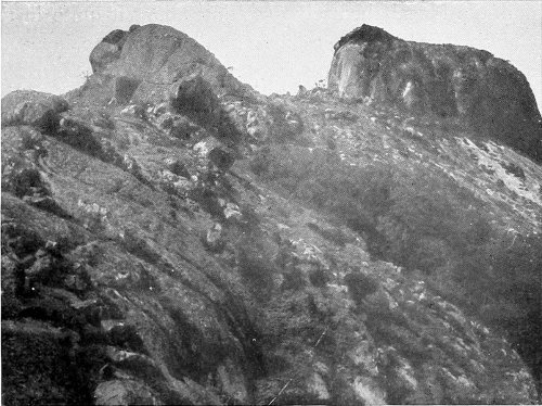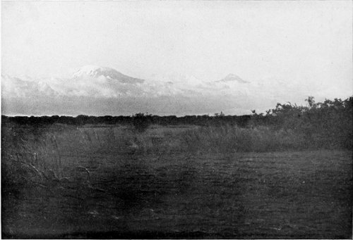 KIBO IN THE FOREGROUND, WITH THE SADDLE-SHAPED RANGE CONNECTING IT WITH MAWENZI IN THE DISTANCE. THE AVERAGE HEIGHT OF THIS “SADDLE” IS MORE THAN 16,OOO FEET.