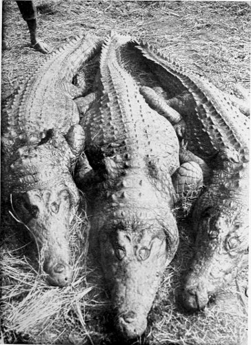 A FISHERMAN’S BAG! THREE CROCODILES SECURED BY THE AUTHOR IN THE WAY DESCRIBED IN “WITH FLASHLIGHT AND RIFLE.”