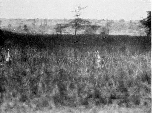 A SINGLE PAIR OF CRESTED CRANES WERE OFTEN TO BE SEEN NEAR MY CAMP.