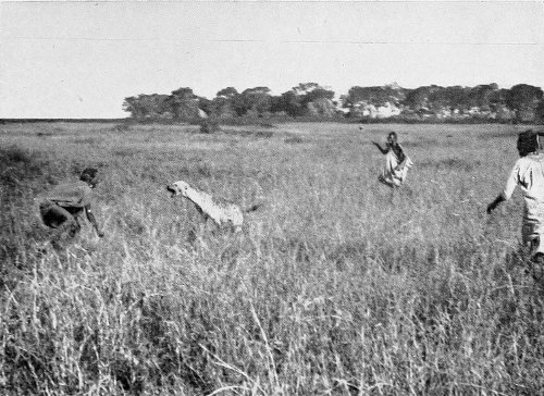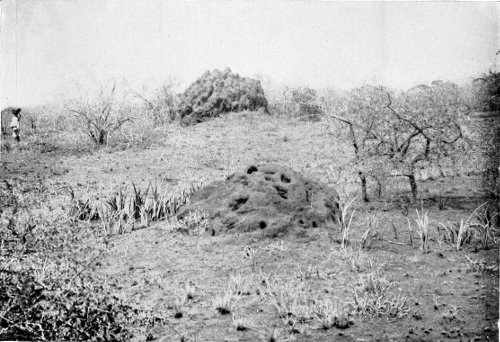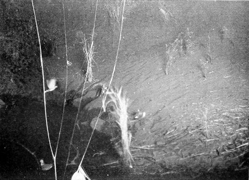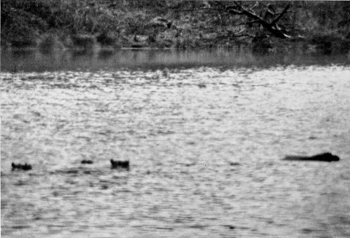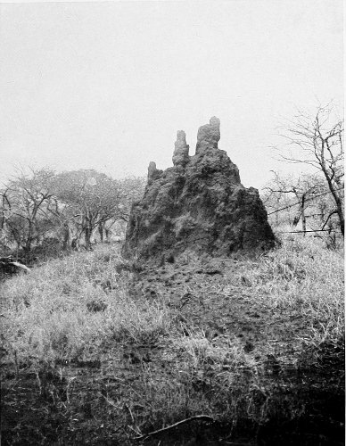 The dark, turbid stream is to find its way, after a thousand twists and turns, into the Indian Ocean. Filterings from the distant glaciers of Kilimanjaro come down into the arid velt, there to form pools and rivulets that traverse in part the basin of the Djipe Lake and at last are merged in the Rufu River. As is so often the case with African rivers, the banks of the Rufu are densely wooded throughout its long course, the monotony of which is broken by a number of rapids and one big waterfall. Save in those rare spots where the formation of the soil is favourable to their growth, the woods do not extend into the velt. Trees and shrubs alike become parched 320 a few steps away from the sustaining river. The abundance of fish in the river is tremendous in its wilder reaches—inexhaustible, it would seem, despite the thousands of animal enemies. The river continually overflows its banks, and the resulting swamps give such endless opportunities for spawning that at times every channel is alive with fry and inconceivable multitudes of small fishes.