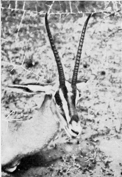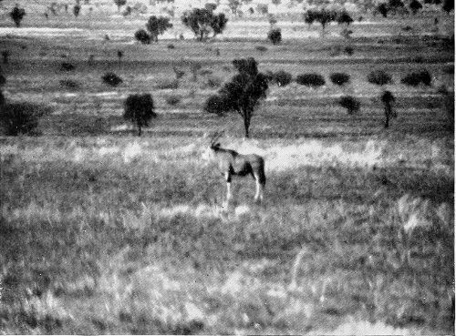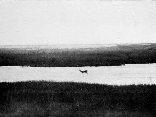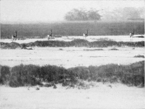 TELEPHOTOGRAPH OF A DWARF GAZELLE (GAZELLA THOMSONI, Gther.) IN FULL FLIGHT, TAKEN AT A DISTANCE OF 60 PACES. WHEN ANIMALS IN RAPID MOTION ARE THUS PHOTOGRAPHED, THE BACKGROUND ALMOST INEVITABLY COMES OUT BLURRED.