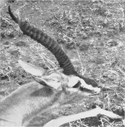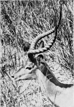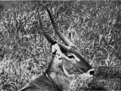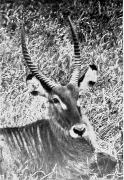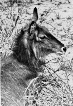 WATERBUCK. THEY SOMETIMES LOOK QUITE BLACK, AS THIS PHOTOGRAPH SUGGESTS. IT DEPENDS UPON THE LIGHT.