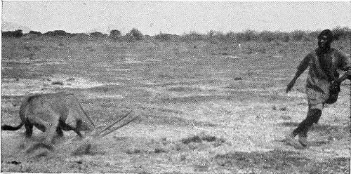 My own process was simple enough. I stretched lines of string round the heifer or goat which was to serve as a bait, and the lions, hyenas, etc., falling on their prey pulled these strings, which worked the flashlight—the animals thus taking their own photographs. Some of these 707 708 709 pictures record new facts in natural history. In my first book, for instance, there is a picture of a lioness making off with her tail raised high in the air in a way no artist would have thought of depicting, and no naturalist have believed to be characteristic.