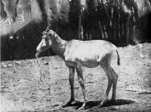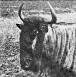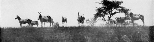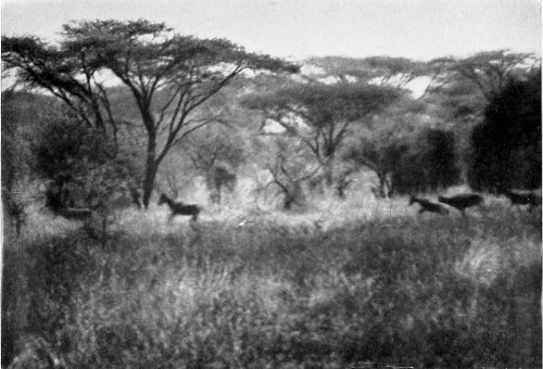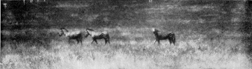 A PLATE WHICH I EXPOSED TWICE BY MISTAKE—SUCH MISTAKES WILL HAPPEN SOMETIMES, HOWEVER CAREFUL ONE MAY BE. IN ADDITION TO THE GNUS AND ZEBRAS WHICH STAND OUT CLEARLY IN THE PICTURE, FAINT OUTLINES OF HARTEBEESTS (ON A SMALLER SCALE) MAY BE DESCRIED.
