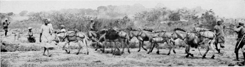 MY WANDOROBO GUIDES ON THE MARCH, WITH ALL THEIR “HOUSEHOLD FURNITURE” ON THEIR BACKS!