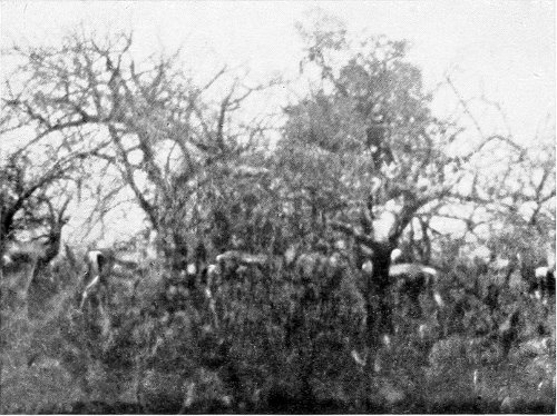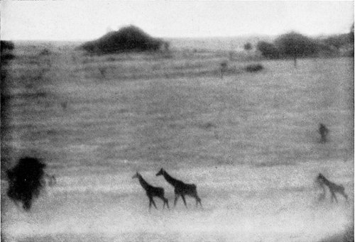 For an effective picture you need to have a group of animals either standing still or in motion, and this you can very seldom get at close quarters, though now and 676 again you may happen upon them standing under trees; and when this occurs you may hope for good results, because the way in which the blue rays of light are reflected from the trees has a favourable effect upon the bromide-silver plates.