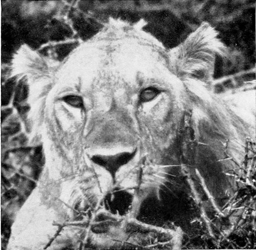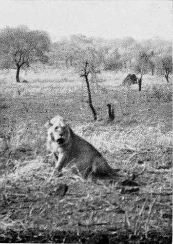 Many wrong impressions are current in regard to this kind of photography. It can be managed in two ways. Either the photographer himself remains on the spot to attend in person both to the flashlight and the exposure, or else the mechanism is worked by a string against which the animal moves. Before I took my photographs I had been a spectator of all the various incidents represented in them, watching them all from hiding-places in dense thorn-bushes, thus coming, as it were, into personal touch with lions and other animals. Though not so dangerous really as camping out on the velt, where one’s fatigue and the darkness leave one defenceless against the possible attacks of elephants or rhinoceroses, you need good nerves to spend the night in your thorn-thicket hiding-place with a view to flashlight snapshots of lions at close quarters. In that interesting work Zu den Aulihans, by Count Hoyos, and in Count Wickenburg’s Wanderungen in Ostafrika, the reader will find interesting and authentic accounts of night-shoots 702 which correspond with my own experiences. Count Coudenhove in his first book describes very vividly the effect upon the nerves of the apparition of numbers of lions within a few paces of him, when concealed in a thorn-bush at night.