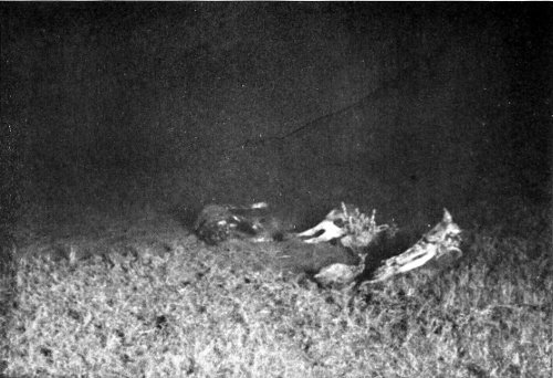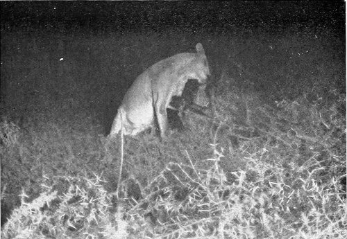 LIONESS FRIGHTENED AWAY FROM CARCASE BY THE FLASH-LIGHT.