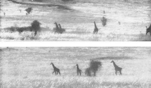 I have already expressed my view that this non-instantaneous exposure (when not too prolonged) imparts a certain softness and vagueness to the photograph which give it an artistic effect. It gives scope also for the personal taste and preferences of the operator. When taken against the horizon photographs require less exposure than with the velt for background. The dark green of the trees and shrubs no less than the red laterite soil offering unfavourable backgrounds for photographs of animals in Africa, as elsewhere, one has to pay particular attention, 681 682 683 of course, to the effects of shadows, shadows which to the eye seem quite natural producing extraordinary effects upon the negatives.