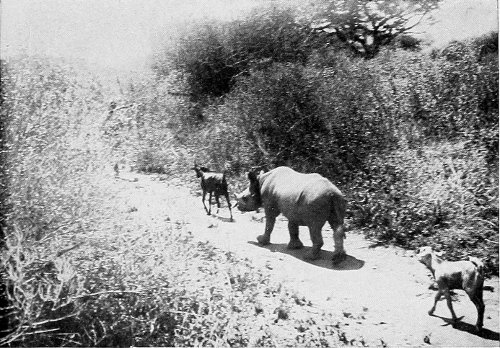 How keenly I regret that I had not the advantage from the first of the perfected photographic apparatus that has come into existence as the result of long experience! I look back with regret upon the many failures I experienced in my earlier efforts, the excitement of the moment often causing me to neglect some necessary precaution. Lions, rhinoceroses, hippopotami, giraffes, and antelopes innumerable—nearly all my attempts to photograph them were fruitless. When I came to develop the negatives at night-time I would find a blurred suggestion of the objects I had seen so 677 678 679 distinctly before me in the daylight, or else, owing to some mishap, an absolute blank. All the greater was my joy when on rare occasions I did succeed in getting such pictures as those of the rhinoceroses already referred to.