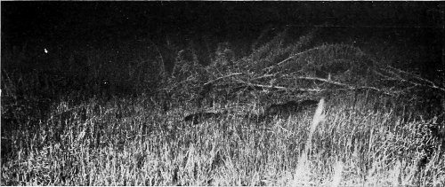 I repeat that there is an immense harvest awaiting the man who is prepared to work thoroughly in this field. Why, for instance, should he not succeed in getting a picture by night of an entire troop of lions? My photographs show how a mating lion and lioness fall on their victim—from different sides; and how three lionesses may be seen quenching their thirst at midnight, all together. With good luck some one may manage to photograph a troop of a dozen or twenty lions hunting their prey—that would be a fine achievement. Or he might secure a wonderful group of bull-elephants on their way down to a drinking-place. The possibilities are immense.