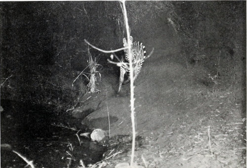HOW MY FLASHLIGHT PICTURES WERE APT TO BE SPOILT. I. THE ZEBRA IS BEHIND THE STICK TO WHICH THE COMMUNICATING STRING IS ATTACHED.