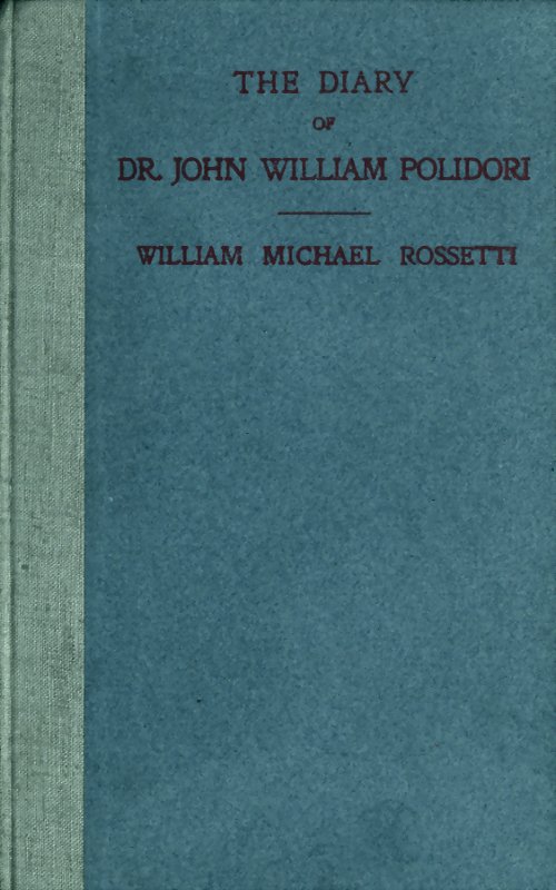 A person whose name finds mention in the books about Byron, and to some extent in those about Shelley, was John William Polidori, M.D.; he was Lord Byron's travelling physician in 1816, when his Lordship quitted England soon after the separation from his wife. I, who now act as Editor of his Diary, am a nephew of his, born after his death. Dr. Polidori figures not very advantageously in the books concerning Byron and Shelley. He is exhibited as overweening and petulant, too fond of putting himself forward face to face with those two heroes of our poetical literature, and too touchy when either of them declined to take him at his own estimation. I will allow that this judgment of Polidori is, so far as it goes, substantially just; and that some of the recorded anecdotes of him prove him deficient in self-knowledge, lacking prudence and reserve, and ignoring the distinction between a dignified and a quarrelsome attitude of mind. He was, in fact, extremely young when he went abroad in April 1816 with Byron, to whom he had been recommended by Sir Henry Halford; he was then only twenty years of age (born on September 7, 1795), Byron being twenty-eight, and Shelley twenty-three. The recommendation given to so very young a man is a little surprising. It would be a mistake, however, to suppose that Polidori was without some solid attainments, and some considerable share of talent. He was the son of Gaetano Polidori, a Tuscan man of letters who, after being secretary to the celebrated dramatist Alfieri, had settled in London as a teacher of Italian, and of his English wife, a Miss Pierce; the parents (my maternal grand-parents) survived to a great age, only dying in 1853. John Polidori, after receiving his education in the Roman Catholic College of Ampleforth (Yorkshire), studied medicine in Edinburgh, and took his doctor's degree at a singularly early age—I believe almost unexampled—the age of nineteen. His ambition was fully as much for literary as for professional distinction; and he published, besides The Vampyre to which I shall have to recur, a prose tale named Ernestus Berchtold, a volume of verse containing a drama entitled Ximenes, and some other writings.