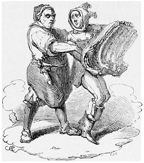 That, even in grave England, and with quaint Ben Jonson, Master Owlglass was a favourite, we may see from two allusions which he makes to him; one in the “Poetaster,” Act the Third, Scene the Fourth, where Tucca exclaims: “What, do you laugh, Owlglass?” And again in the “Masque of the Fortunate Isles,” produced in 1626, Ben Jonson introduces Howleglass; and Johphiel says to Merefool:—