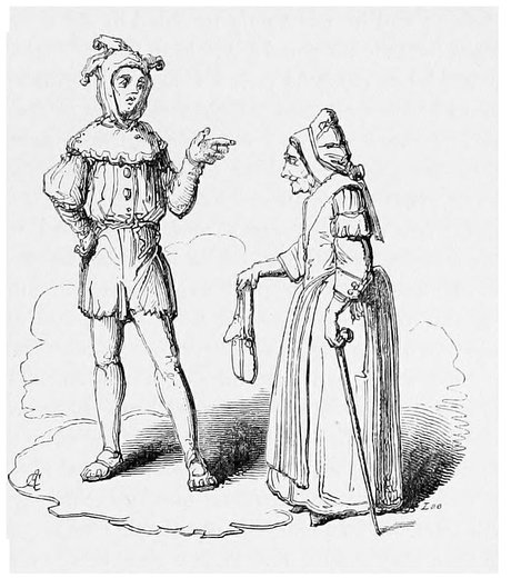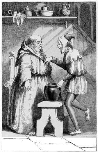 Like the deep searching work of Rabelais, the book is a satire, not upon human life only, but upon special and dangerous topics. Very early editions contain the story of how Eulenspiegel procured an old skull from a churchyard, and turned the passion for worshipping relics to profitable account;[1] and the priests and would-be learned men of his time continually appear in ludicrous, undignified, or humiliating positions. Rank was not respected, nor was vice in high places passed by with (so-called) discreet silence. Yet with all the graver objects in the book, the immediate aim of amusement was never forgotten; and, letting us into the secrets of peasant life in Germany at an era when peasants had little to rejoice over, we almost imagine that we can hear the shouts of laughter with which the blunt outspoken jokes of this sly clown were received. But Mr. Hallam does justice to a higher appreciation of this kind of literature among the better classes of the time.