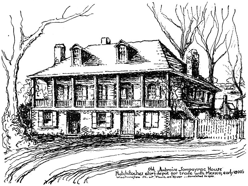 Among forbears who served in the development of Natchitoches and of the state are Hon. Alexander E. Sompayrac who cast the deciding vote to abolish the Louisiana Lottery. His great-grandfather of Tarn, France, familiar with America through overseas trade and as a French naval officer, brought three sons to New Orleans via the West Indies. Ambrose married Desiree Josephine Briant, (daughter of a planter there and Colonel of a Regiment of French Dragoons, and Marie Mozard). Settling in Natchitoches about 1800, he bought new wireless telegraphy stock, using it in his cotton business. His place became a depot for trade with Mexico.