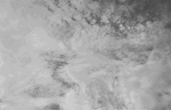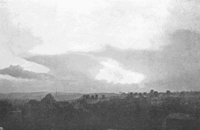 If no image appears after about forty seconds, add more ammonia as above described, and leave for another forty seconds, and so on, until by this method of trial the right quantity of alkali for the[177] particular exposure has been ascertained. The development must never be hurried, or the background of sky will blacken too soon, and in some cases it may take a quarter of an hour or more to get enough density on the cloud. But as a general rule the image is fully out in about two minutes, and the plate is then washed and fixed in the usual way.