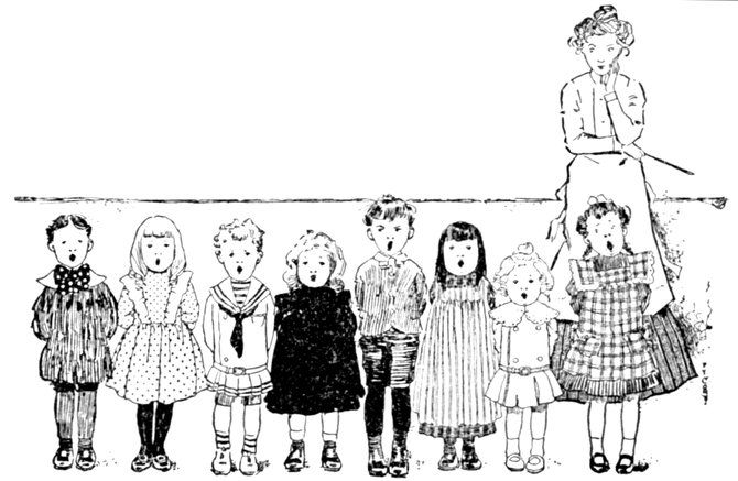 “Is it possible that you—” she inquired, pointing to the advancing children, many of whom promptly fell over backward under the sudden onslaught of the horrified teachers.