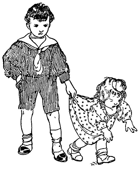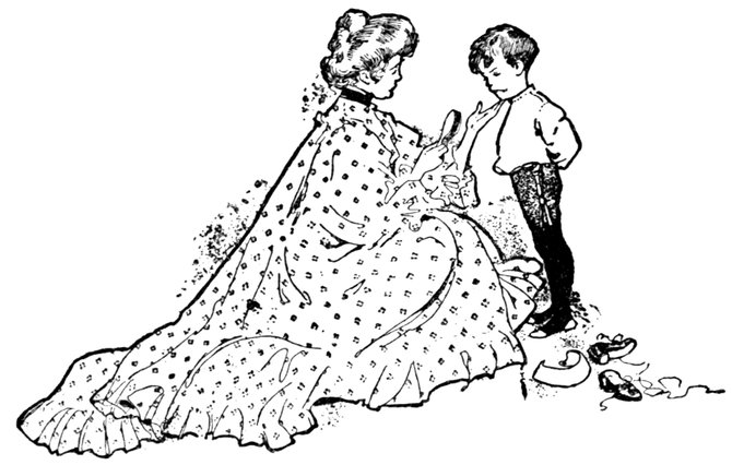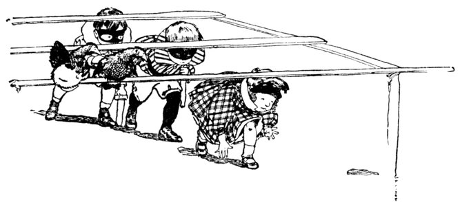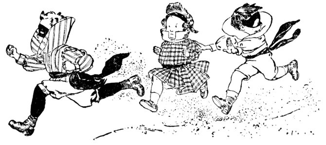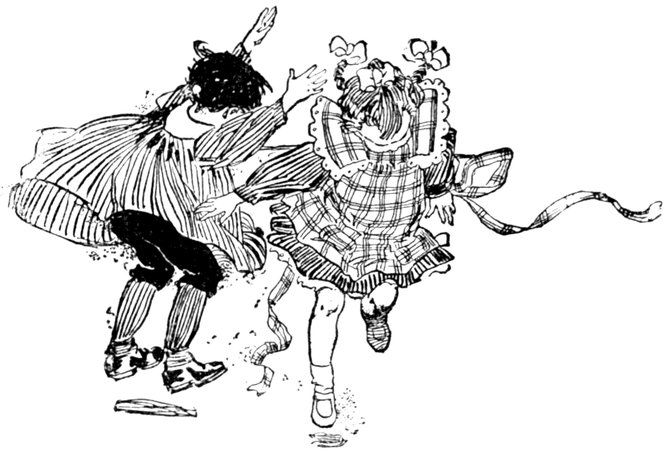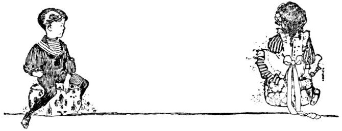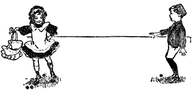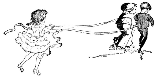 As she had expected, Eddy inclined to play “Tripping lightly as we go.” His conception of the process implied in the song was a laborious jumping up on one toe and down on the other. This exercise he would keep up till the crack of doom if undiverted from it. When induced to stop, he signalled to Joseph Zukoffsky to take his place. Joseph, on being tunefully implored to produce something new in the way of a game, declared for “Did you ever see a laddie?” and the ring started in blithely: