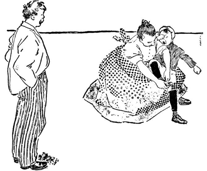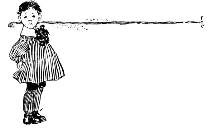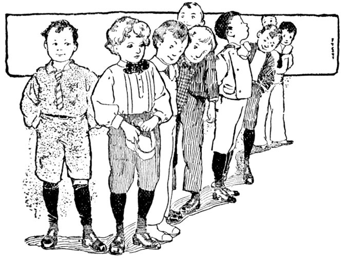 At just that moment little Richard Willetts sneezed loudly and unexpectedly to all, himself included, with the result that his ever-ready suspicion fixed upon his neighbor, Andrew Halloran, as the direct cause of the convulsion. Andrew’s well-meant efforts to detach from Richard’s vest the pocket-handkerchief securely fastened thereto by a large, black safety-pin strengthened the latter’s conviction of intended assault and battery, and he squirmed out of the circle and made a dash for the hall—the first stage in an evident homeward expedition.