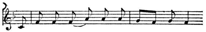 As he slipped back to the house alone, practising it furtively and foretasting the joys of imparting it to Peter, the stableman, Cecelia appeared suddenly from behind a large tree. She was all smiles—she was not afraid of him any 220more. Dancing lightly on one foot, she waved her bonnet and began to sing, bubbling with laughter. Horror! What did he hear?