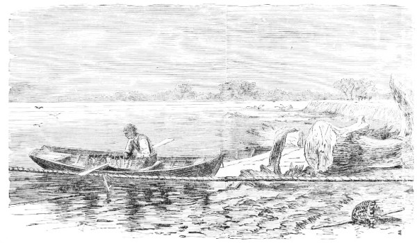 Their ailments were evidently only too well founded, and as the people were clearly not a complaining set, we were sorry that we had not brought more of the coveted article with us. The whites of this coast looked weazened, thin, yellow, and cadaverous, as if they had a perpetual conflict with fever in which they invariably got the worst of it. They had the shadow of death in their faces. In their motions{37} they exhibited a langour which strangers are apt to attribute to laziness, but which I believe due to disease. Let a man once take the southern fever, and it will be many months if not years before he feels like himself again. Our latest patients were fishermen, and to Mr. Green’s insatiable inquiries they explained that they caught in their seasons shad; rock, our striped bass; trout, our weakfish; hickory shad, white perch, mullet, spot, round-nosed shad and flat backs, though what these latter were was more than we could guess. They said that the fishing had fallen off greatly of late years, but that the prices had increased and that now they were paid seventy five cents for a roe shad, and thirty for bucks.