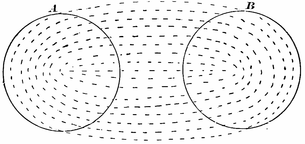 [12] The simplest form of stereoscope is two tin tubes about one and one-half inches calibre, dead black inside and (for normal eyes) ten inches long. Close each end with paper not too opaque, on which an inch-long thick black line is drawn. The tubes can be looked through, one by each eye, and held either parallel or with their farther ends converging. When properly rotated, their images will show every variety of fusion and non-fusion, and stereoscopic effect.