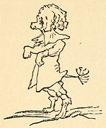 Dyball was remarkable for his leader, Nelson, whose tricks displayed in an extraordinary degree the sagacity and docility of the canine race. This dog would, at a word from his master, lead him to any part of the town he wished to traverse, and at so quick a pace, that both animals have been observed to get on much faster than any other streetwalkers. His business was to make a response to his master's "Pray pity the Blind" by an impressive whine, accompanied with uplifted eyes and an importunate turn of the head; and when his eyes have not caught those of the spectators, he has been seen to rub the tin box against their knees, to enforce his solicitations. When money was thrown into the box, he immediately put it down, took out the contents with his mouth, and, joyfully wagging his tail, carried them to his master. After this, for a moment or two, he would venture to smell about the spot; but as soon as his master uttered "Come, Sir," off he would go, to the extent of his string, with his tail between his legs, apprehensive of the effects of his master's corrective switch. This animal was presented to Dyball by Joseph Symmonds, the blind fiddler, who received him of James Garland, another blind beggar, who had taught him his tricks. Unfortunately for Dyball, this treasure has lately been stolen from him, as is supposed by some itinerant player, and he is now obliged to depend on a dog of inferior qualifications, though George has declared him to "Shew very pretty for tricks."